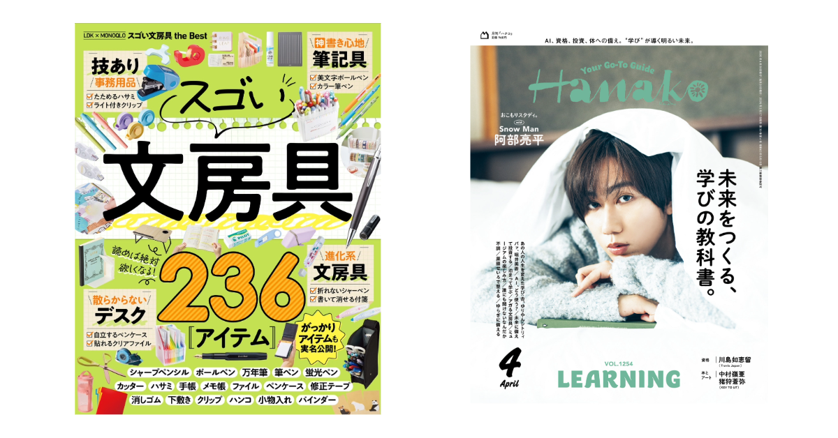2月末に発売された、食と旅の雑誌 『Hanako 2026年4月号』(マガジンハウス)にてアガる文房具として、